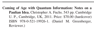 In this review of Christopher Fuchs's book Coming of Age with Quantum Information: Notes on a Paulian Idea, Daniel Greenberger makes a fantastic account of the value of correspondence: