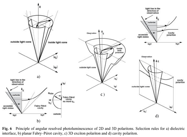 It became apparent that we were measuring this dispersion curve when performing angle resolved photoluminescence, but the question why we were measuring it in this case whilst we knew this was never the case for bulk exci- ton-polariton or exciton in a quantum well, eluded us for a while, although explanation was just in a couple of drawing (thanks to discussions with D. Citrin and L. C. Andreani). However at this time, the field was quite small and sedate and angle resolved measurements lied in a drawer, not-understood for