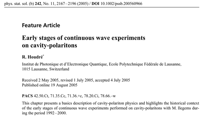 Early stages of continuous wave experiments on cavity-polaritons. R. Houdré in Phys. Stat. Sol. B 242:2167 (2005). What the paper says!?