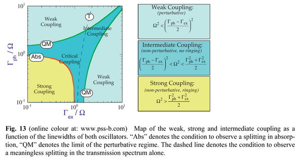 the single atomic picture of two coupled levels applies here although we are dealing with a pair of two-dimensional continuum systems. For a given k, a single photon mode and the single coupled exciton interact with an equivalent oscillator strength of about $10^{12}$