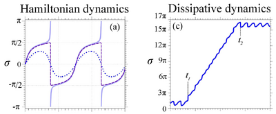 After describing weird behaviours of such phase dynamics (like if populations cancel exactly there is a transition between oscillating and running phases):