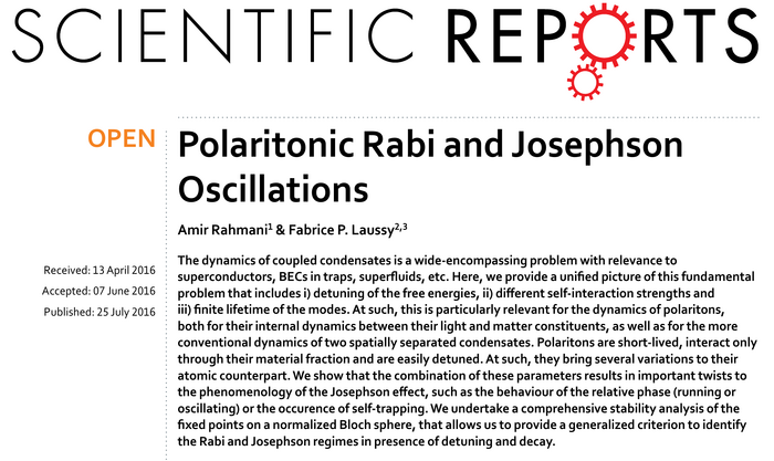 Polaritonic Rabi and Josephson oscillations. A. Rahmani and F.P. Laussy in Sci. Rep. 6:28930 (2016).