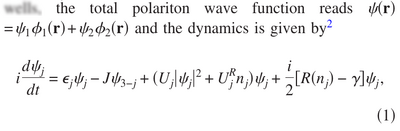 The dynamics is described by a Gross-Pitaevskii equation (also with an equation for the reservoir $n_j$ (Eq. (2)):