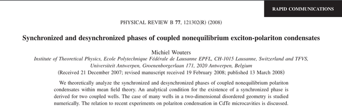 Synchronized and desynchronized phases of coupled nonequilibrium exciton-polariton condensates. M. Wouters in Phys. Rev. B 77:121302(R) (2008). What the paper says!?