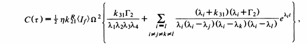 The 3LS is modeled from de Vries and Wiersma (their Ref. [16]) and the driving is coherent so they solve Optical-Bloch equation. They also refer to Eq. (16) but apparently in error as this is not discussed there. They find the solution for $g^{(2)}$ "as a sum of complex exponentials":
