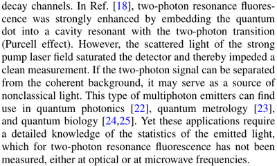 - ↑ Signatures of two-photon pulses from a quantum two-level system. K. Fischer, L. Hanschke, J. Wierzbowski, T. Simmet, C. Dory, J. Finley, J. Vučković and K. Müller in Nature Phys. 13:649 (2017).