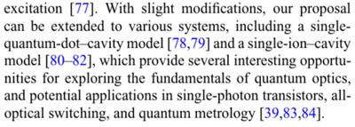 - ↑ Strong Photon Blockade Mediated by Optical Stark Shift in a Single-Atom–Cavity System. J. Tang, Y. Deng and C. Lee in Phys. Rev. Appl. 12:044065 (2019).