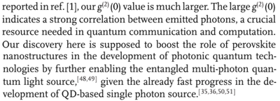 Qiang et al.[23] report superbunching from perovskites and link that, maybe hurriedly, to entangled multi-photon quantum light: