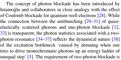 - ↑ Two-Photon Blockade in an Atom-Driven Cavity QED System. C. Hamsen, K. N. Tolazzi, T. Wilk and G. Rempe in Phys. Rev. Lett. 118:133604 (2017).