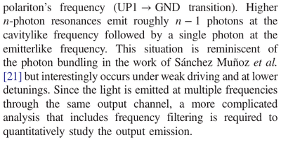 - ↑ Cavity QED in the Ultrastrong Coupling Regime: Photon Bunching from the Emission of Individual Dressed Qubits. L. Garziano, A. Ridolfo, S. D. Liberato and S. Savasta in ACS Photonics 4:2345 (2017).