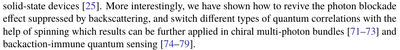- ↑ Chiral photon blockade in the spinning Kerr resonator. Y. Zuo, Y. Jiao, X. Xu, A. Miranowicz, L. Kuang and H. Jing in Opt. Express 32:22020 (2024).