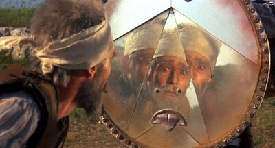 But glory is, like the star in the sky, punctual only. Another interesting modernization of the novel is through the knight of the mirrors, Carrasco—both the brother in law and, ultimately, the Knight of the White Moon in the novel, the one who defeats Don Quixote—but who in the musical becomes a more symbolic and effective metaphor for "truth" or "reality", shattering the power of imagination, or, more accurately, conviction. This reflects art as fabrications and deceits. Those mirrors are tainted with the colors of the deriding vocabulary: histrionic, melodramatic, pompous... This is how you kill a knight-errant, scorning him as a buffoon, mocking him as a pathetic loser. That is deadly to him because that is true. This is what makes him fall from his horse and his universe onto the harsh ground of reality. This is also how you kill an artist, by telling them: "I don't see you", "I don't feel you" or, worst of all, "I don't believe you."