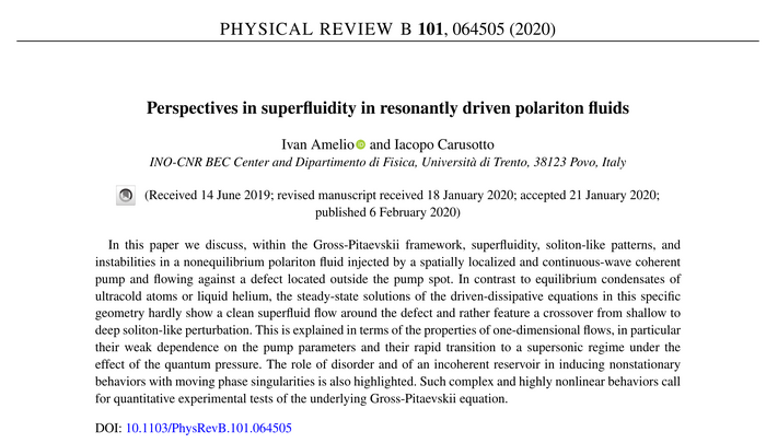 This page is still in progress.Perspectives in superfluidity in resonantly driven polariton fluids. I. Amelio and I. Carusotto in Phys. Rev. B 101:064505 (2020). What the paper says!?