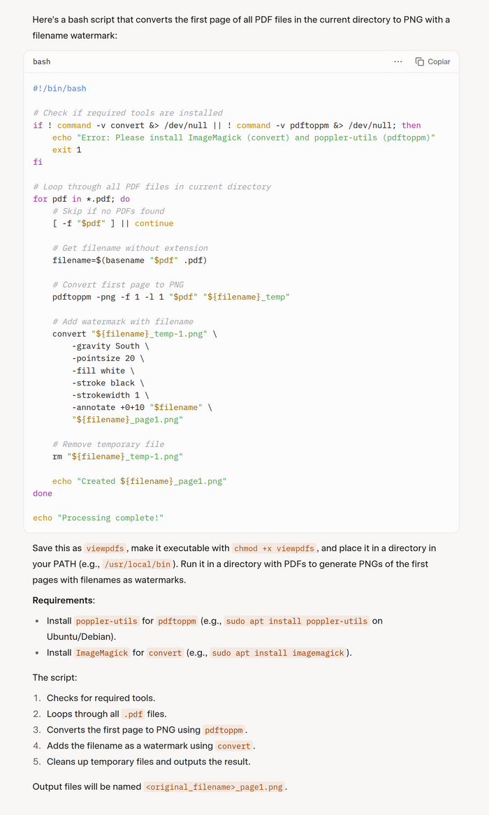 Fabrice: make me a quick linux bash script (viewpdfs) to put in a directory the first page of all pdf documents in the current directory converted in png and with a watermark of the filename