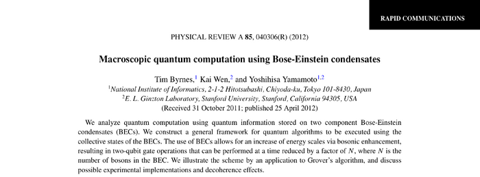 Macroscopic quantum computation using Bose-Einstein condensates. T. Byrnes, K. Wen and Y. Yamamoto in Phys. Rev. A 85:040306 (2012). What the paper says!?