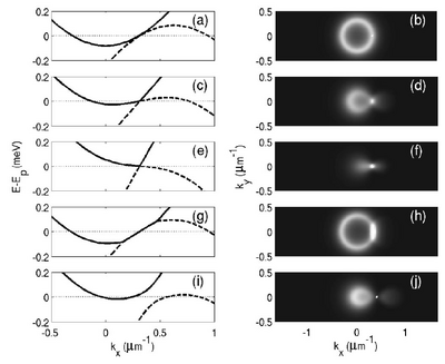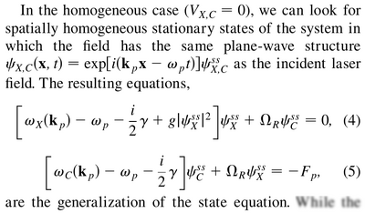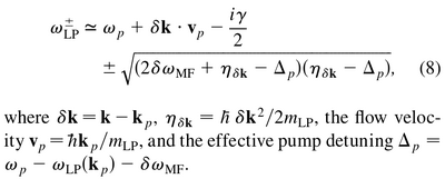 They excite «close to the bottom of the LP dispersion» well into the parabolic region with a resonant (plane wave) pump $F_p$, generating a propagating plane wave of momentum $k_p$. They work in mean-field (Gross-Pitaevskii equation):