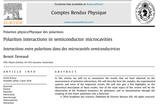 Polariton interactions in semiconductor microcavities. B. Deveaud in C. R. Phys. 17:874 (2016). What the paper says!?