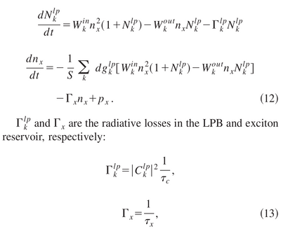 Their interaction Hamiltonian reads: ($a$ for photons and $b$ for excitons):