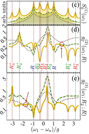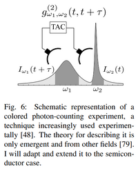 This is one pillar of our research activity. In 2009, I submitted a funding proposal nicknamed SQOD to bring to TUM (to Jonathan Finley's group) our activity on strong light-matter coupling in quantum dots.[1][2][3] Arne Laucht had made great use of it with J. M. Villas Bôas' addition of pure dephasing and I thought there were much to be done along those lines. One objective was to do frequency-filtered correlations, as depicted in Fig. 6 of the SQOD proposal: