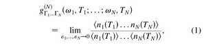 The left-hand side is the sought physical quantity, which is clear conceptually, and which had been written down in terms of high-dimensional, time-ordered integrals, that were formal results which could not be tackled in actual problems, not even the simplest ones. The right-hand side, on the other hand, is something that can be worked out even analytically in many instances and, at all rates, is extremely easy numerically, not even involving times if computing coincidences only. This is the correct result, fixing a typo in the original text (?!)The expression in the published 2012 lacks the explicit notation of normal-ordering and time-ordering, which is obviously implied and without which the results are unphysical.