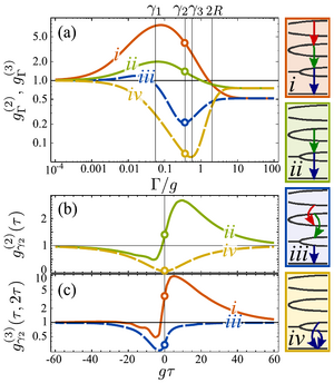 A referee wanted to stress this last claim, and our exact three-photon correlations from the Jaynes-Cummings model—a considerable improvement on the approximate two-photon correlations from resonance fluorescence—were challenged to demonstrate a bigger break from the state of the art. In the Supplementary, we therefore computed all possible four-photon correlations from transitions in the nonlinear Jaynes-Cumming model. Not enlightning per se, but a sure demonstration of our capacity to do it... effortlessly.