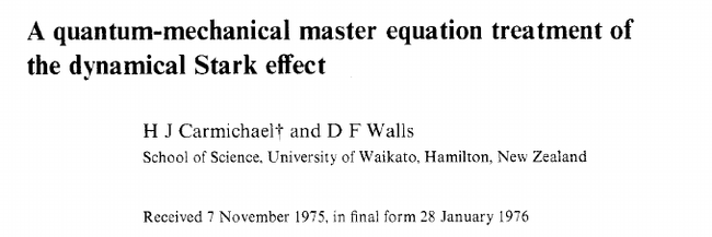 A quantum-mechanical master equation treatment of the dynamical Stark effect. H. J. Carmichael and D. F. Walls in J. Phys. B.: At. Mol. Phys. 9:1199 (1976). What the paper says!?