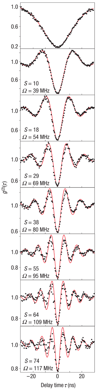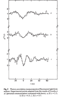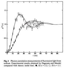 - ↑ 3.0 3.1 Photon Antibunching in Resonance Fluorescence. H. J. Kimble, M. Dagenais and L. Mandel in Phys. Rev. Lett. 39:691 (1977).
