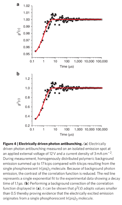 - ↑ Electrically driven photon antibunching from a single molecule at room temperature. M. Nothaft, S. Höhla, F. Jelezko, N. Frühauf, J. Pflaum and J. Wrachtrup in Nature Comm. 3:628 (2012).