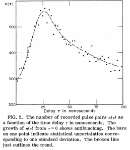 - ↑ Photon-antibunching and sub-Poissonian photon statistics. X. T. Zou and L. Mandel in Phys. Rev. A 41:475 (1990).