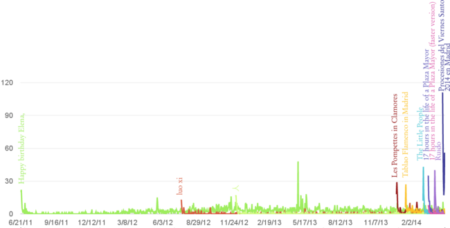 034 days ago, I uploaded my first YouTube video [1], to celebrate Elena's birthday (on the 22). I now uploaded my tenth [2], on the Holy Week in Madrid.