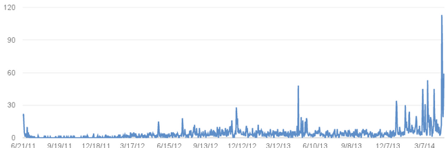 We have no clue either what happened on the 30th of April 2013, with 48 hits, most of them from different viewers as suggested by the "unique cookies" feature.