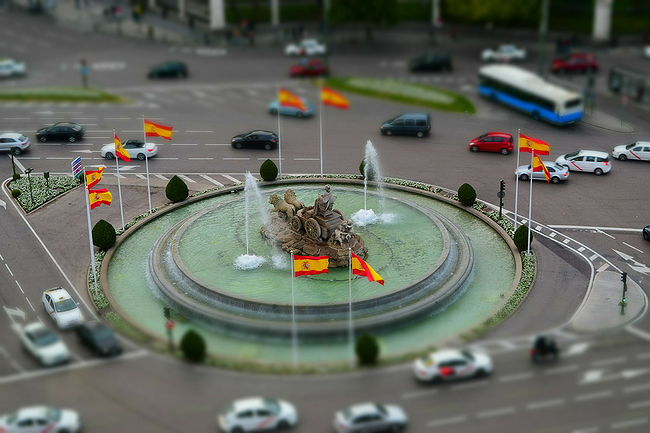 From there, following the Paseo del Prado, you arrive to the emblematic statue of la Cibeles. Who is she anyway? (she's known as "Cybele" in English). She's a Goddess of intricate origin, in what is now Turkey but was previously Phrygia or Anatolia. She is the deity of different, sometimes contradictory, elements, with nature, earth, agriculture, wilderness as popular repetitions. For some reason, she is a symbol of Madrid. There, she guards the keys of the city in her hand and the water that will flood the Banca de España, in front, if someone should attempt to rob again Spain from its gold. The two lions that haul the chariot are former lovers who went a bit too far in a temple dedicated to the Goddess. You see her here reigning over a roundabout.