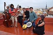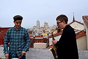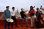 We invited them to make a gig in Mayorcita, which they accepted. Live music on the roofs of the Plaza Mayor is a once in a lifetime experience. To top it all, they performed an original work, "Moneda". The video clip will take some time to emerge (update: you can now see it here), but we can show you some photos of this outstanding event.