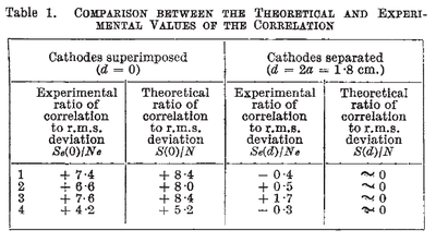 The light was split in two by a beam-splitter and directed on two photo-cathodes , of which was one translated sidewise and the following correlations were noted (four points for each of two distances!):