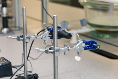 The experiment involves a radioactive source (shown left) and specific safety procedures must be adhered to. We expect maturity and good behaviour from the students. Eating/drinking/applying cosmetics are not allowed during the demonstration and following the staff instructions regarding safety issues and practices in the laboratory is mandatory at all times. Safety instructions will be explained before the demonstration, in particular, the procedure to follow in case of an emergency (e.g., fire alarm).