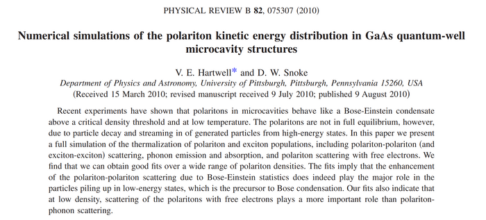 Numerical simulations of the polariton kinetic energy distribution in GaAs quantum-well microcavity structures. V. E. Hartwell and D. W. Snoke in Phys. Rev. B 82:075307 (2010). What the paper says!?
