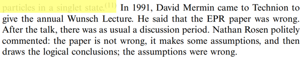 Peres was a PhD student of Nathan Rosen (the R in EPR) and as such gets first-hand access to its historical development, which one can find in this paper. He also discusses how Shannon's theory of information is relevant to the dilemma, and how EPR failed to take into account the localization of information, ««using no-less than four-times the word "instantaneous", a surprising expression for people who knew very well that this term was undefined in the theory of relativity»», but his point is difficult to get across in such a short text. It probably is better defined in Refs. 12-15, in particular Ref. [1] which brings the notion of Lorentz boosts with EPR, something that always bothered me and which I even got a dreamy inkling once of how it was resolving the paradox (probably just an actual dream).