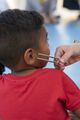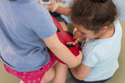 Vamos a formar ondas de sonido con un diapasón. Lo golpeamos y se poner a vibrar. Lo vamos enseñando a todos: primero lo tocan, notando la vibración y a la vez parándola, y luego al acercárselo al oído, oyen la nota.