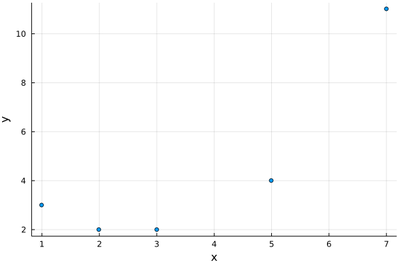 scatter(lx, ly, xlabel="x", ylabel="y", legend=:topleft, label="data")