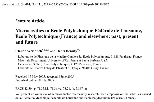 Microcavities in École Polytechnique Fédérale de Lausanne, École Polytechnique (France) and elsewhere: past, present and future. C. Weisbuch and H. Benisty in Phys. Stat. Sol. B 242:2345 (2005). What the paper says!?